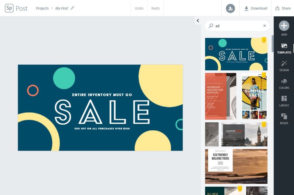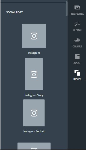 Adobe Spark also features a resize section that will let users resize their creations to their respective social media environment for best fit.